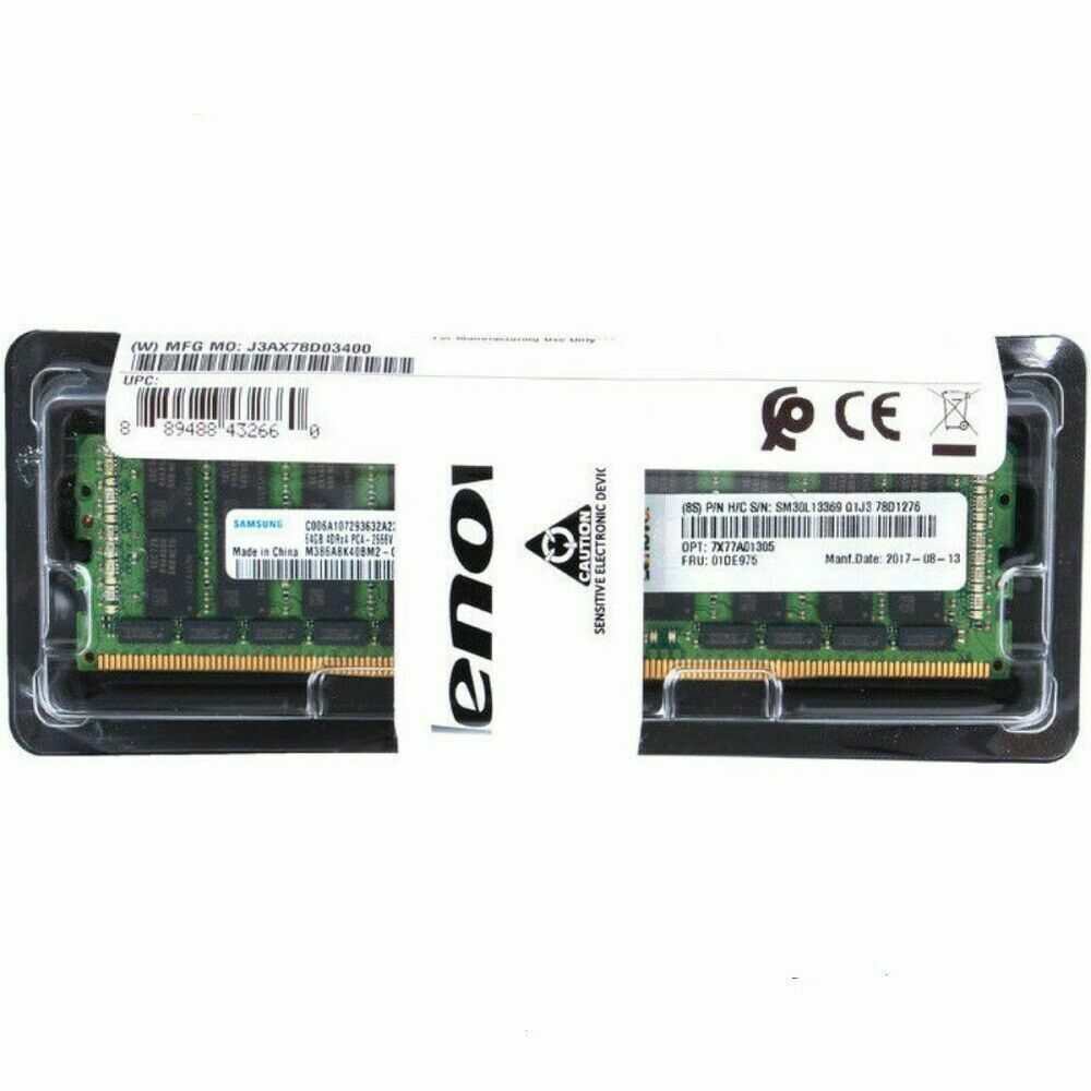 01DE975 LENOVO SAMSUNG MODULO DE MEMORIA 64GB THINKSYSTEM 4Rx4 DDR4 PC4-21300 2666MHZ CL19 288 ESPIGAS 1.2V LRDIMM ECC 7X77A01305 01DE975