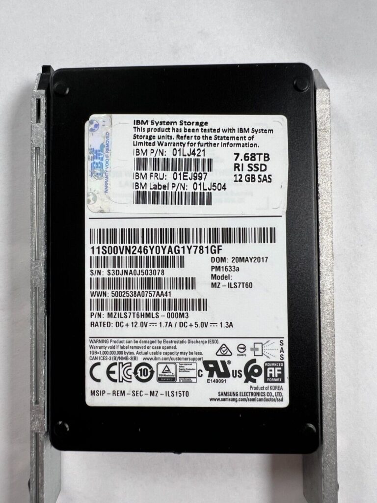 01LJ421 IBM UNIDADE DE ESTADO SOLIDO 7.68TB 12GBPS V5000 G2 SAS 2.5 POLEGADAS 01LJ504 01EJ997 01YM927 01YM929 01LJ421