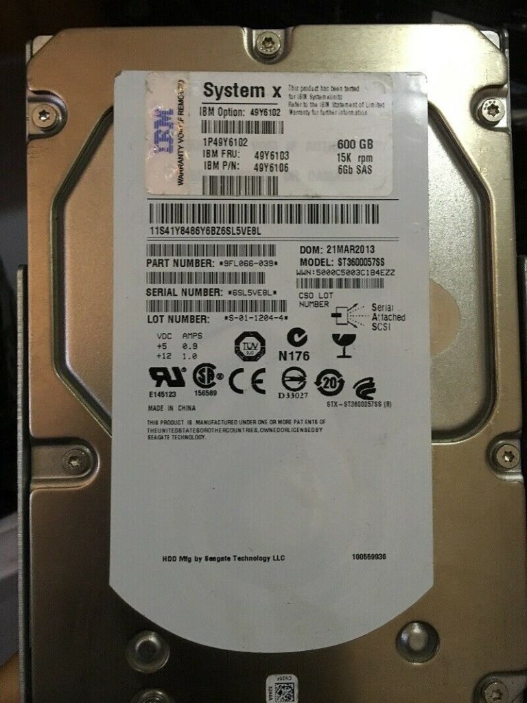 49Y6103 IBM DISCO DURO 600GB 15K 6GBPS SAS 3.5 POLEGADAS 49Y6106 49Y6102 49Y6103