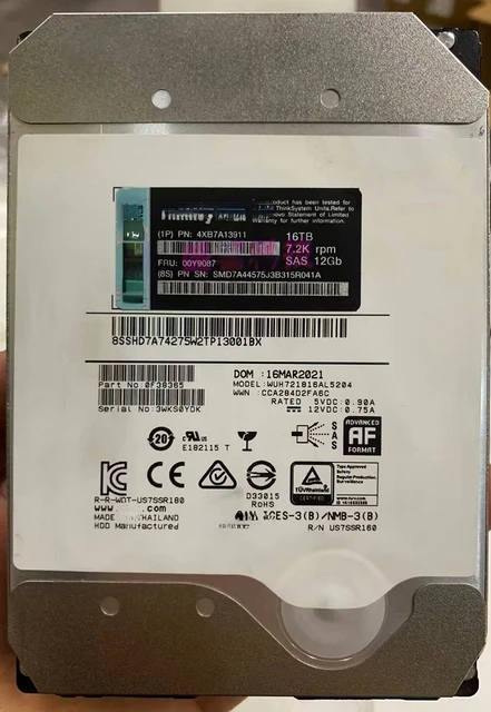 4XB7A13911 LENOVOÂ DISCO DURO 16TB 3.5 POLEGADAS 12GBPS HOT SWAP Â 7.2K Â 512e SAS 00Y9087Â 4XB7A13911