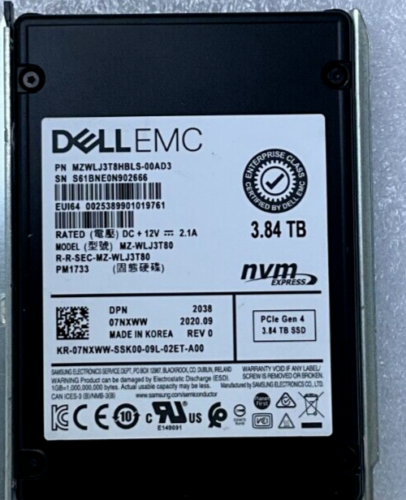 7NXWW DELL EMC UNIDADE DE ESTADO SOLIDO PM1733 3.84TB RI PCIe 4.0 NVME U.2 2.5 POLEGADAS 07NXWW MZ-WLJ3T80 MZWLJ3T8HBLS 7NXWW