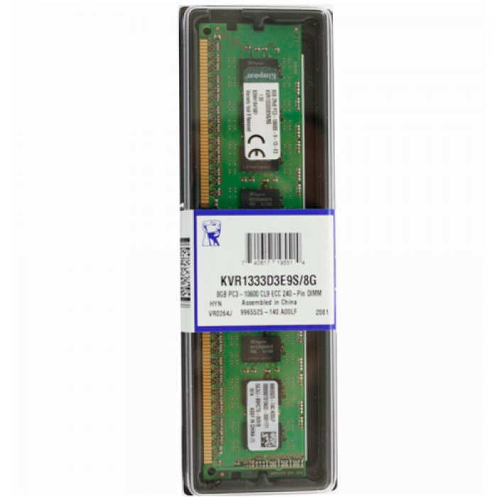 KVR133DE9S/8G KINGSTON MODULO DE MEMORIA 8GB DDR3 SDRAM PC3-10600 1333MHZ UDIMM ECC DIMM 1.5V CL9 240 PINOS KVR133DE9S8G KVR133DE9S/8G